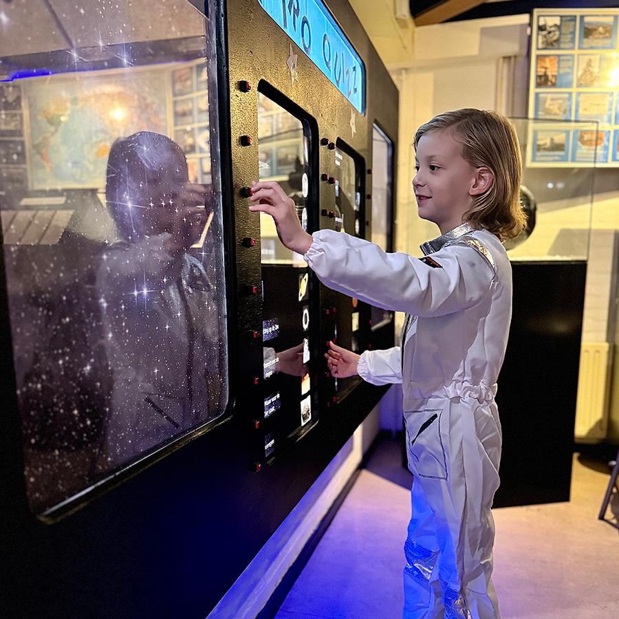 Onze expositie is een eerbetoon aan de passie van onze vrijwilligers. Veel van de interactieve opstellingen zijn door hen zelf ontworpen en gebouwd. Hier leer je door te doen: creëer een tornado, bekijk bliksem van dichtbij en test je kennis met een ruimtequiz. Kinderen vanaf 6 jaar kunnen zich hier urenlang vermaken.